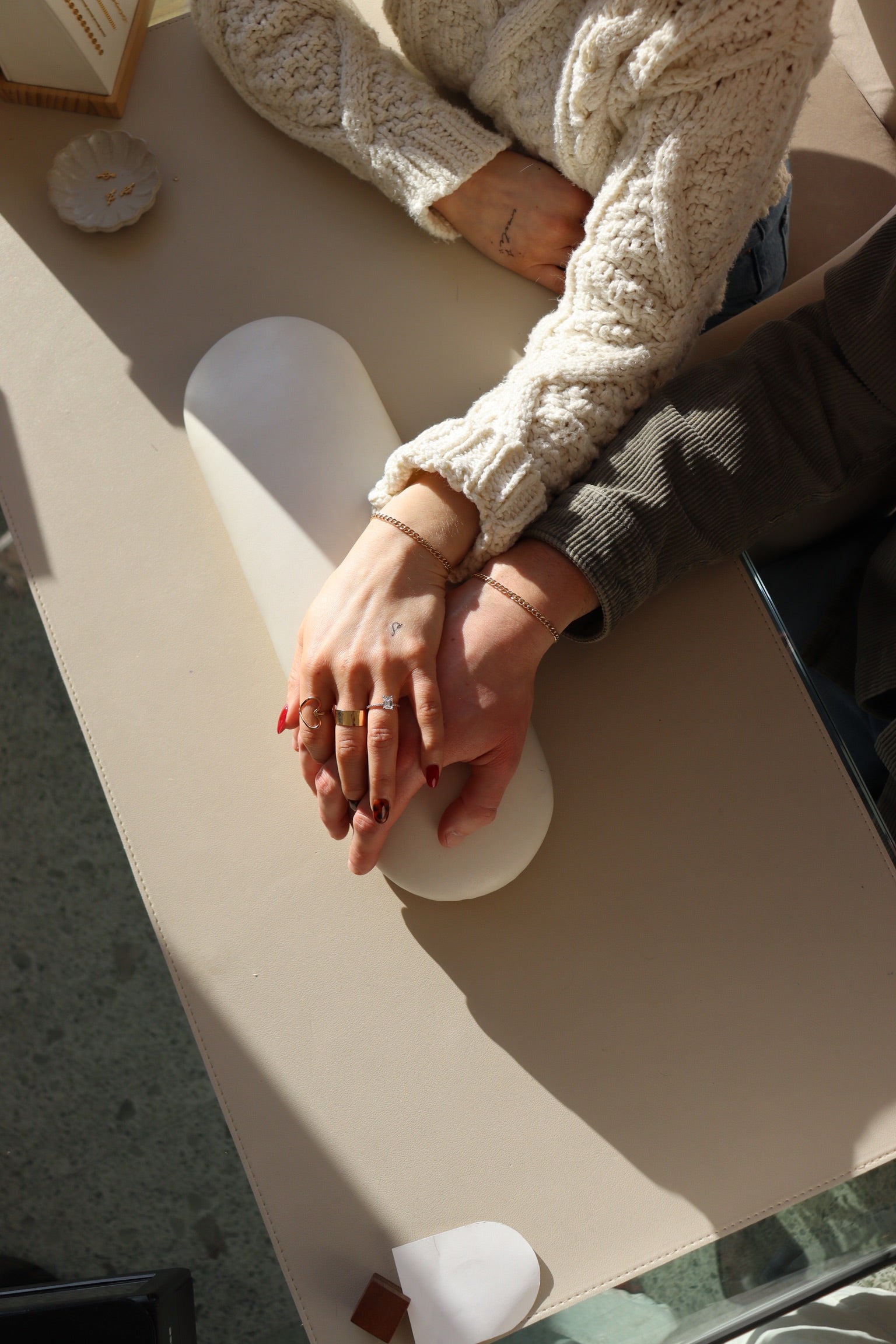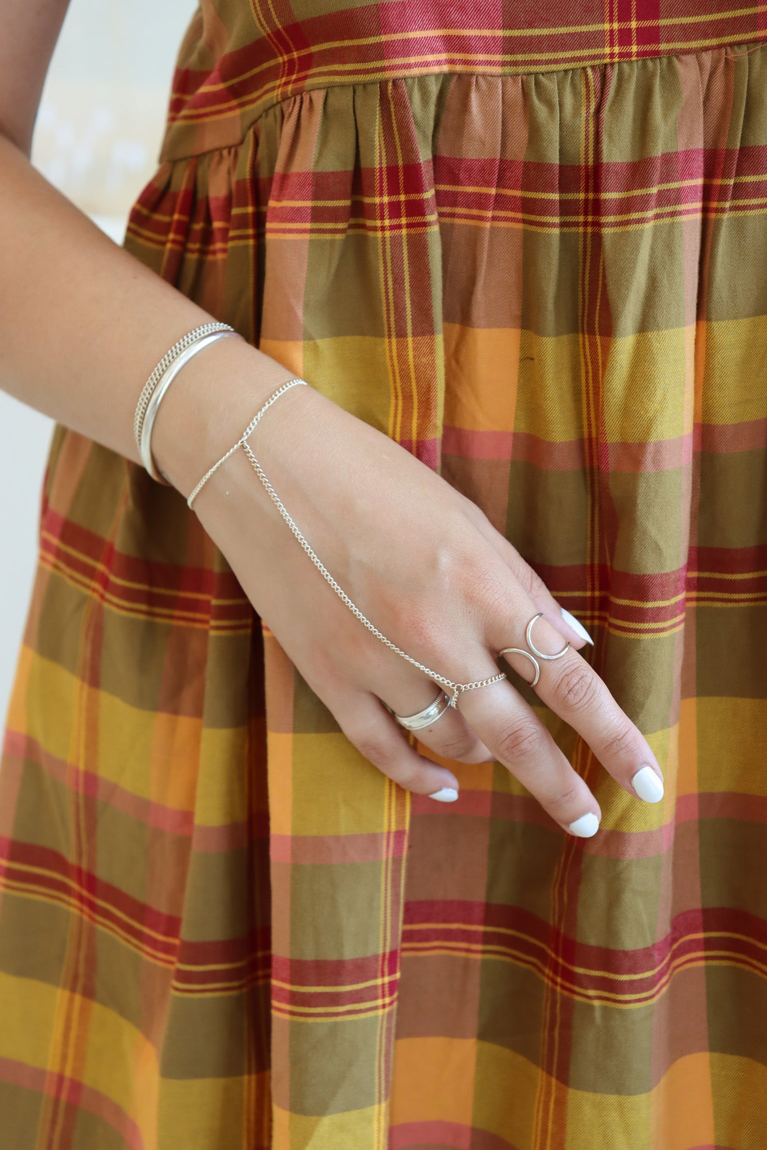 Once you arrive, explore our curated selection of 14k gold-filled and sterling silver chains and choose a style meant to stay with you. Select a bracelet, anklet, ring, or handchain, then make it yours with delicate gems or meaningful charms. We’ll custom-fit your piece for comfort and finish it with a quick, painless micro-weld for a seamless, clasp-free look.